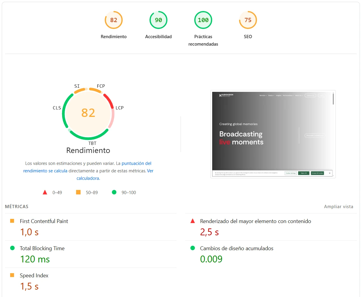 Métricas de Page Speed Insights de Google